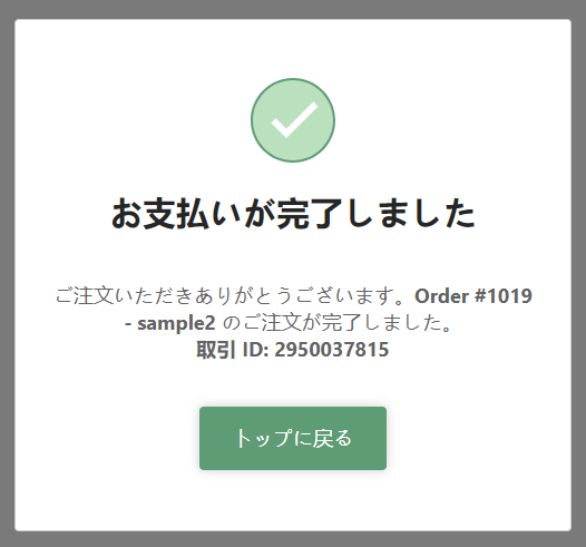 お支払いが完了しました。と表示された時点で、注文と決済が確定します。