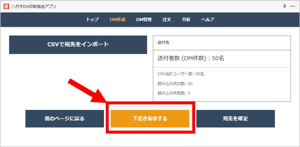 作成を始める本アプリはハガキDM作成途中の状態を一時保存できます。