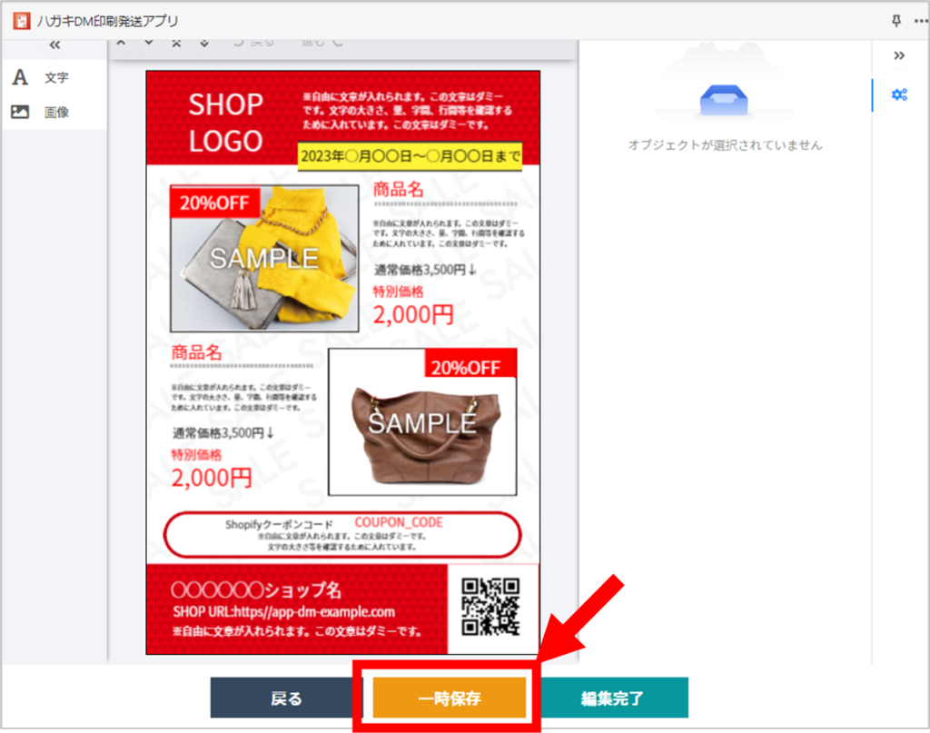本アプリはハガキDM作成途中の状態を一時保存できます。