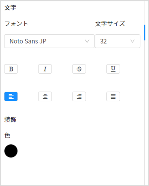 上のように、文字オブジェクトを選択中は以下の内容が編集可能です。