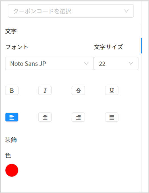 上のように、クーポンオブジェクトを選択中は以下の内容が編集可能です。