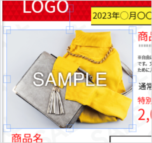 | 画像オブジェクトを削除 | 選択された状態で、DeleteキーもしくはBackSpaceキーを押下する事で削除可能。 |