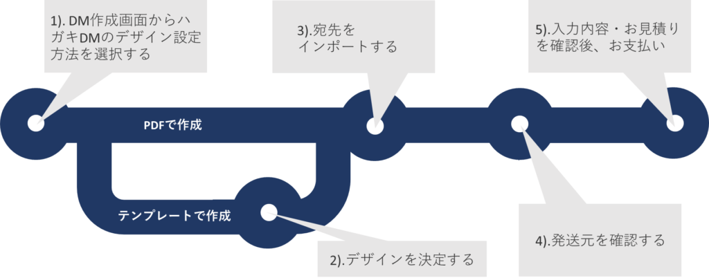 ハガキDMを注文するまでの工程は、主に以下の5つになります。